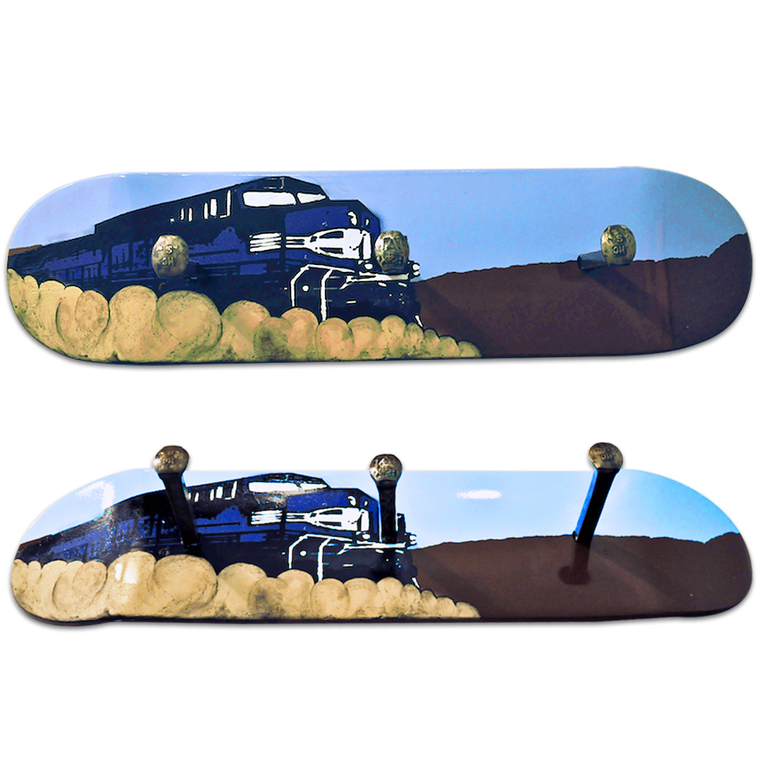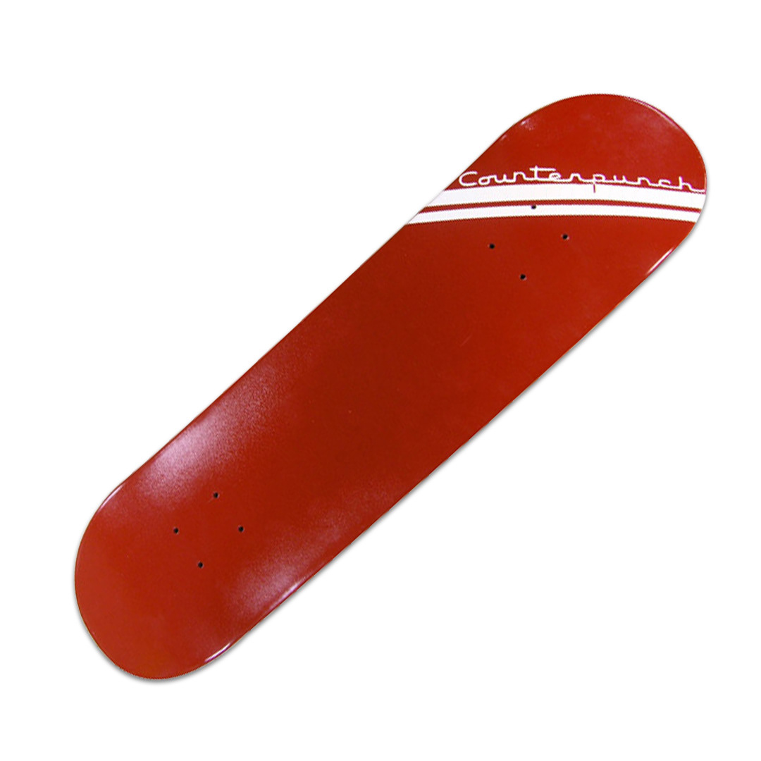 Local skate-punk band Counterpunch asked for a classic hot-rod style design on a deck. I painted the deck with a fire-engine red spray paint base with a silk-screened logo.